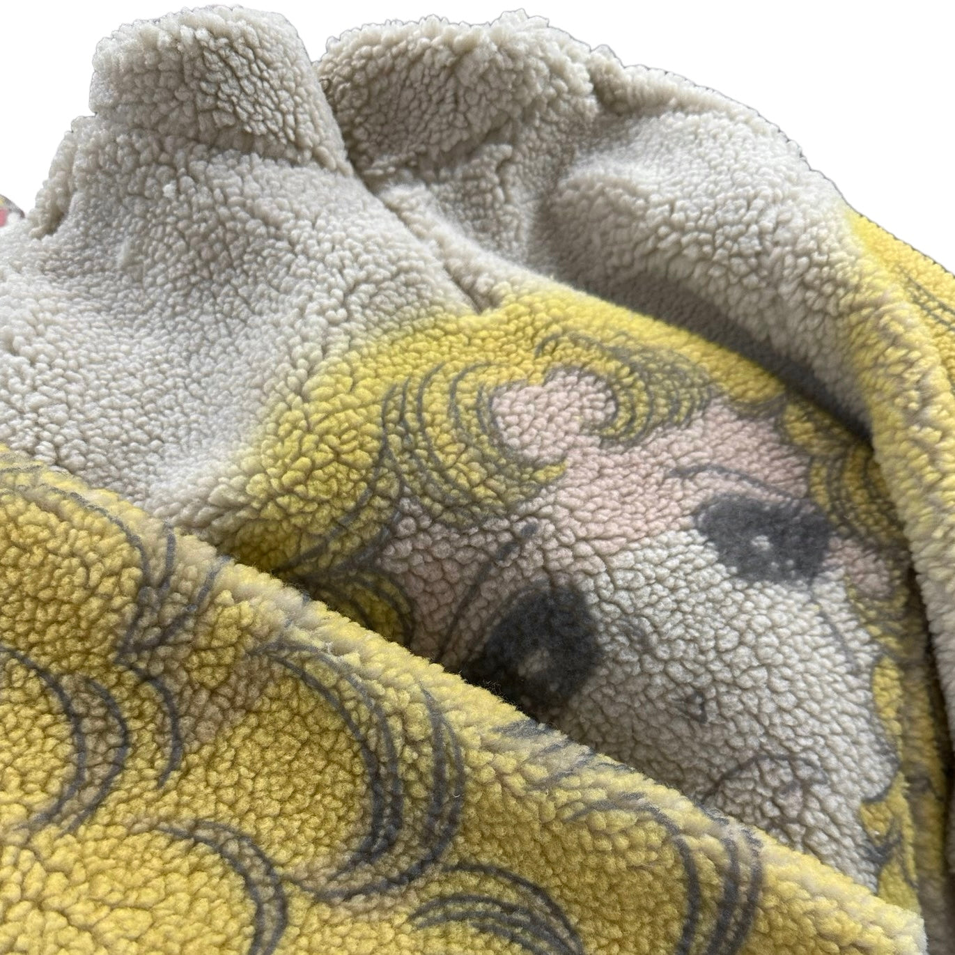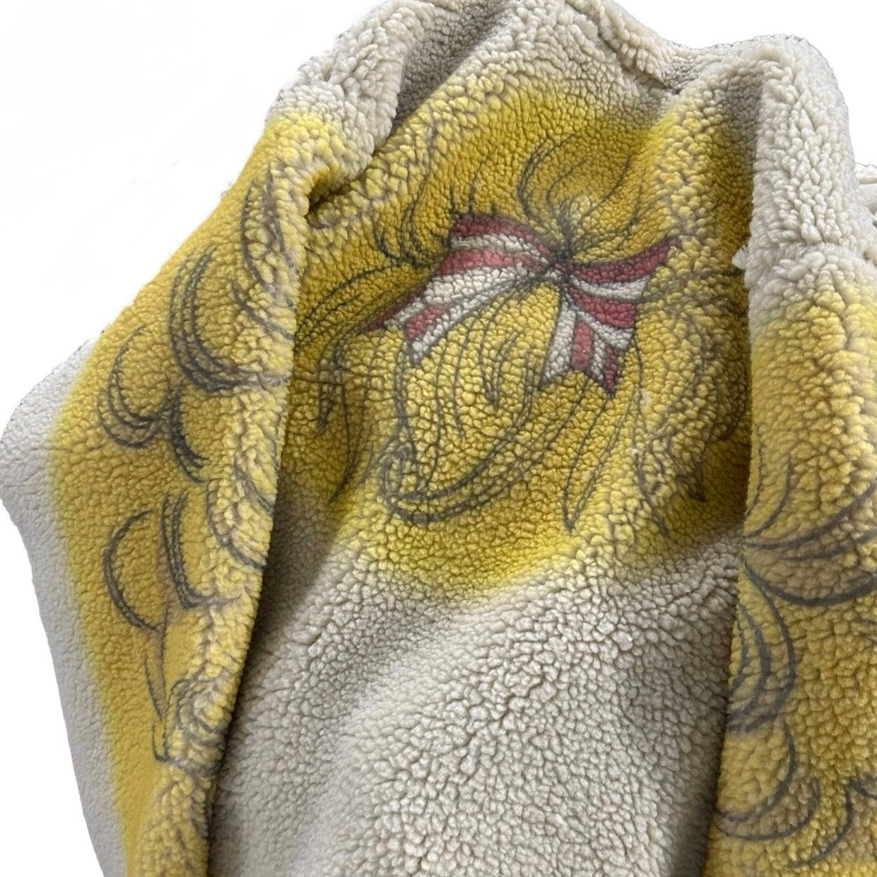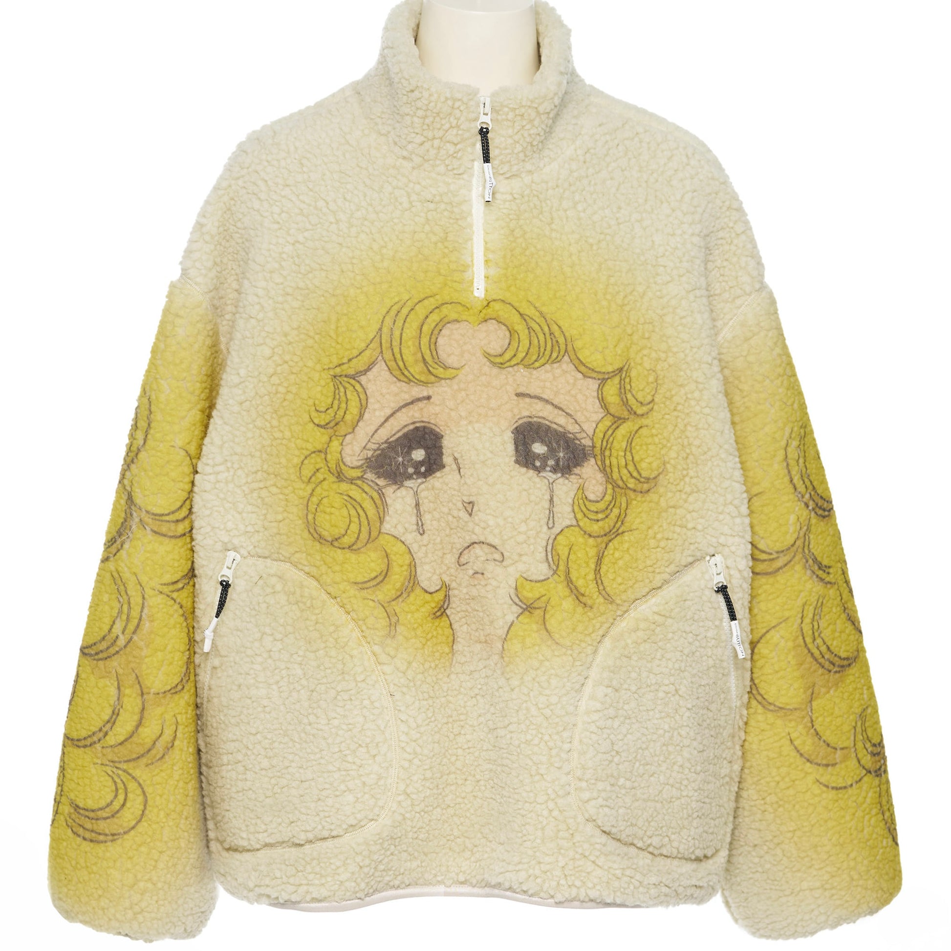 PUSHBUTTON Crying Girl Half Zip Up Fleece Sweater is a highly distinctive and unconventional piece that encapsulates the South Korean brand's signature aesthetic, known for its bold graphics and playful, ironic sensibility.