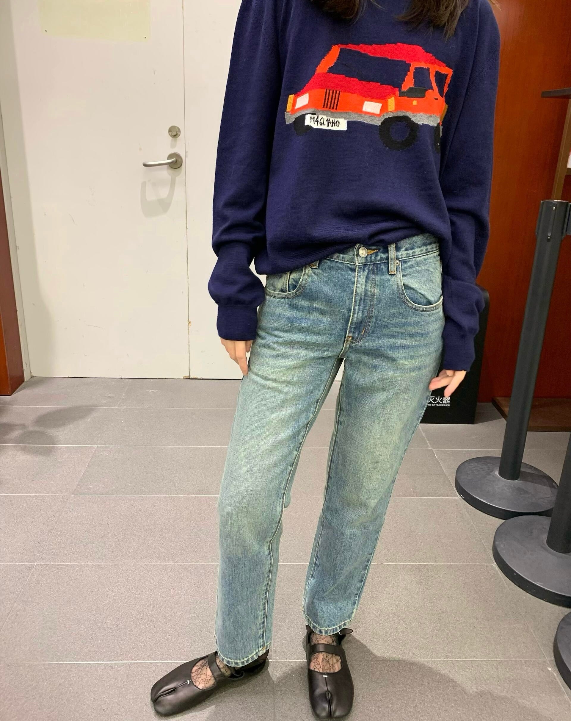 The MAGLIANO Pandino Knit sweater is a showcase of the brand's unique blend of classic craftsmanship and playful design. This blue crew-neck knit features a distinctive front jacquard motif—often a car design—that sets it apart. The regular fit, long sleeves, and ribbed trims ensure a comfortable and stylish wear, making it a statement piece for any modern wardrobe.